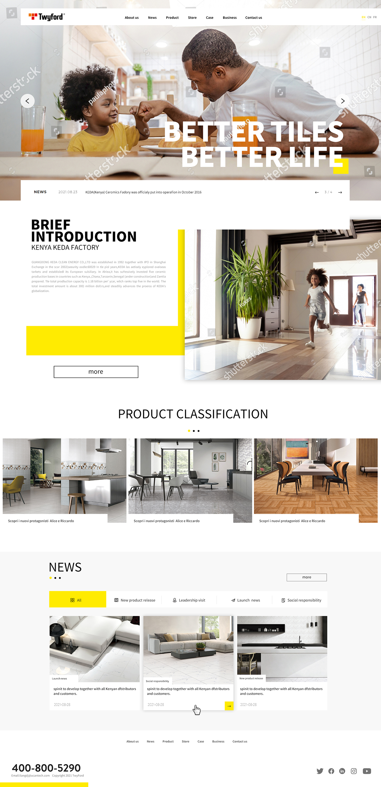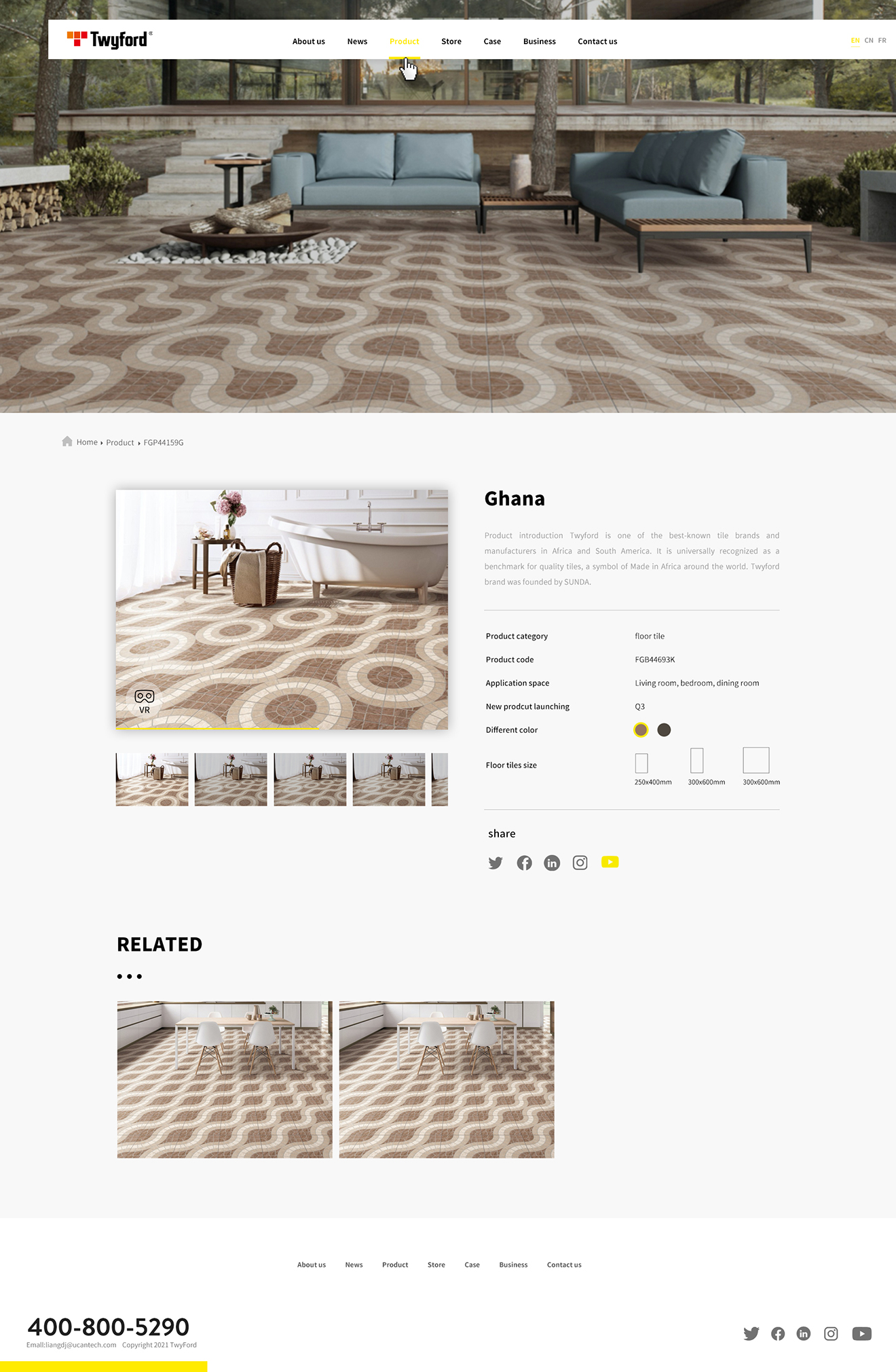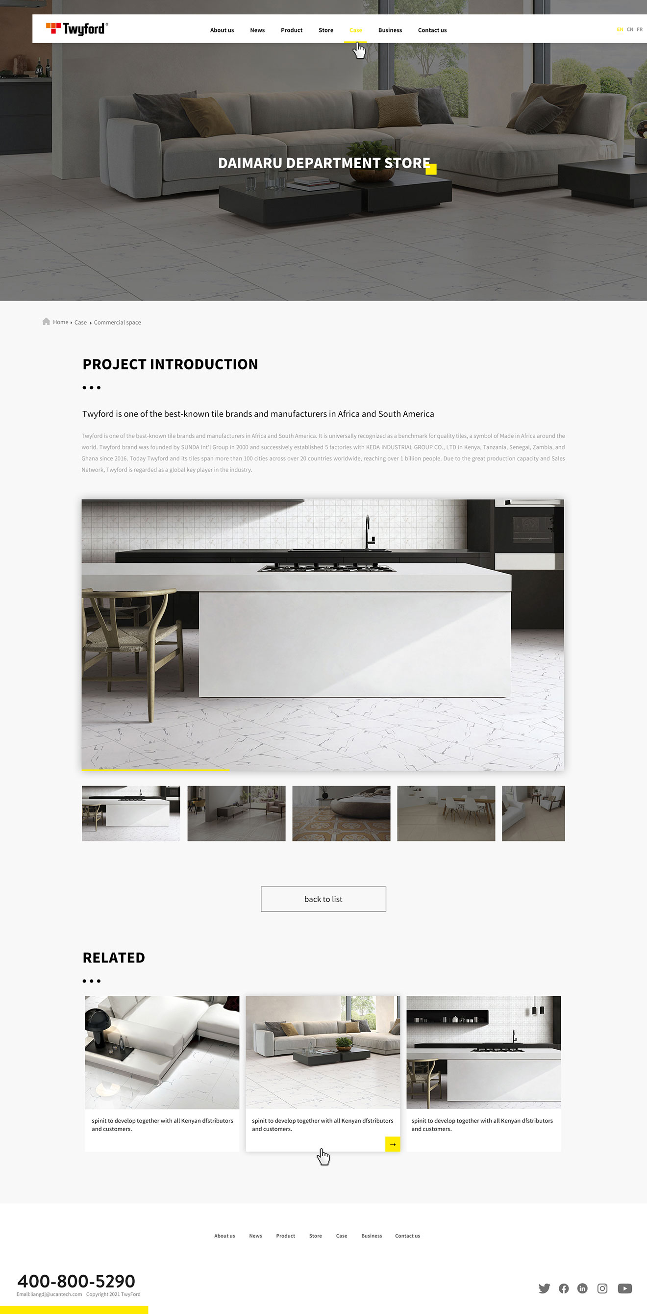 Twyford 是非洲和南美最著名的瓷砖品牌和制造商之一。Twyford品牌由SUNDA Int'l Group于2000年创立,2016年起先后与KEDA INDUSTRIAL GROUP CO., LTD在肯尼亚、坦桑尼亚、塞内加尔、赞比亚、加纳等地建立了5家工厂。多采网站建设公司为Twyford开发其国际站品牌官网。