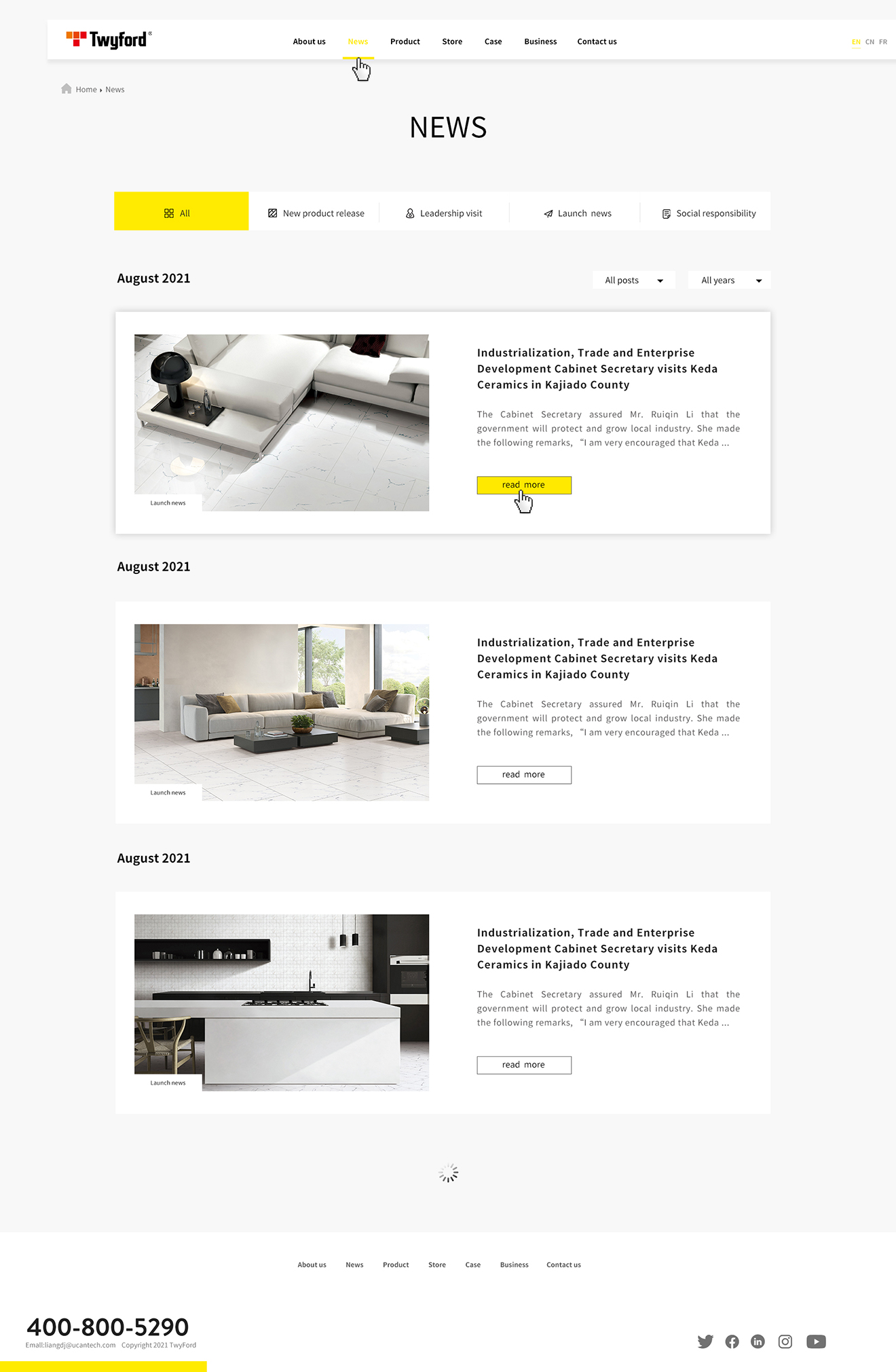 此次网站建设的重心要求满足国际站用户体验标准,让用户从网站上感知客户品牌的高端技术,以及实现产品、空间与人情感的和谐互动。在设计上符合最新响应式建站的标准,在视觉上塑造了品牌的科技、时尚感和未来感,让浏览者感受到品牌及产品可带来的无限可能。同时多采要考虑的问题有很,例如需要为Twyford实现数据交互、搜索引擎优化推广、各国家和地区访问响应、数据导入、网络安全等众多考验。