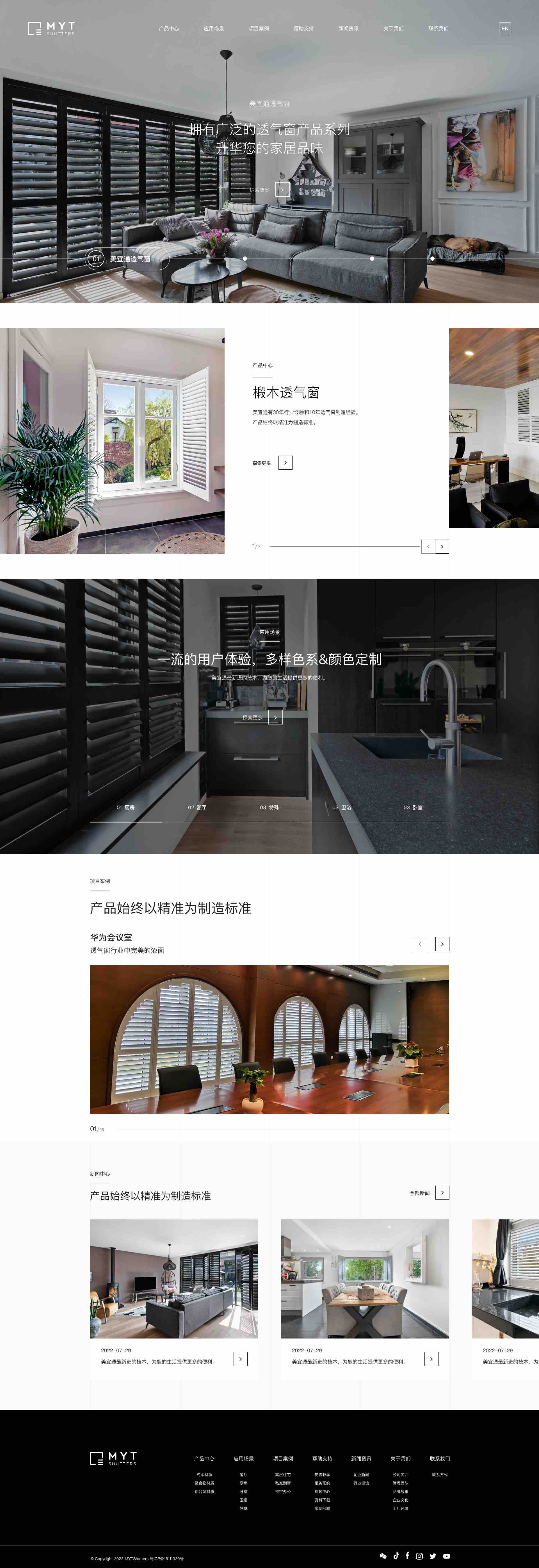MYT美宜通此次品牌官网搭建的重心是在进入中国市场的新形象建立塑造,打造出一个透气窗专家的形象,产品多条件检索,调整结构优化用户体验,让用户从网站上感知品牌的创新产品和光影透气窗生活,在设计上着重体现产品应用场景,亦符合响应式建站的标准,在视觉上重塑了品牌的高端感和场景感,让浏览者感受到品牌及产品带来的应用效果感受。