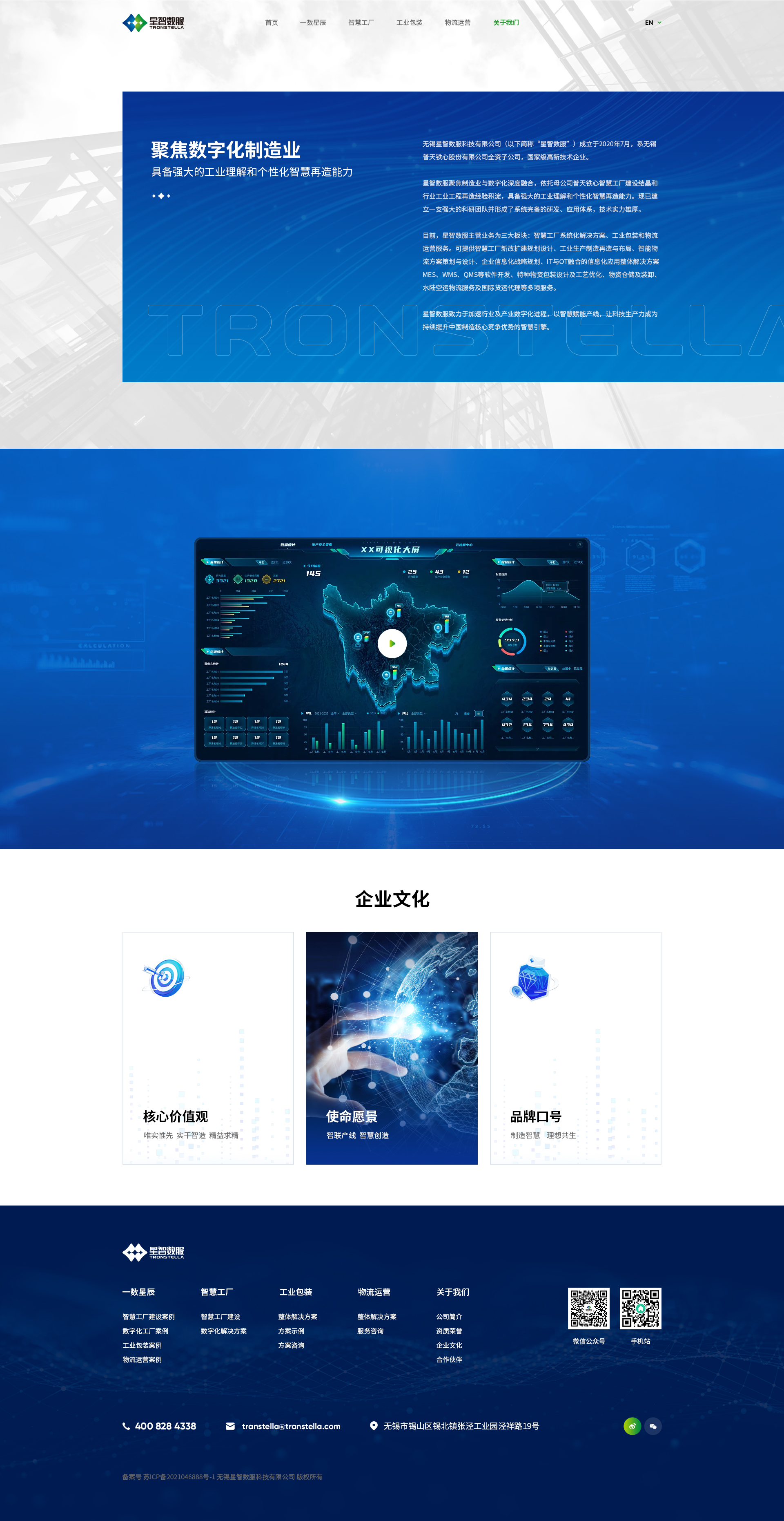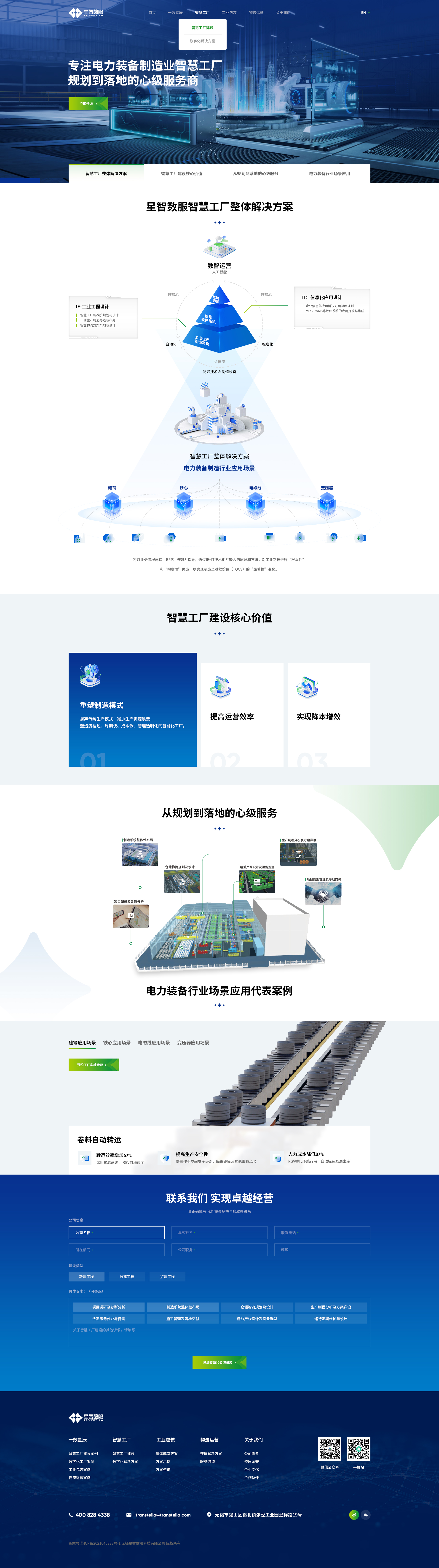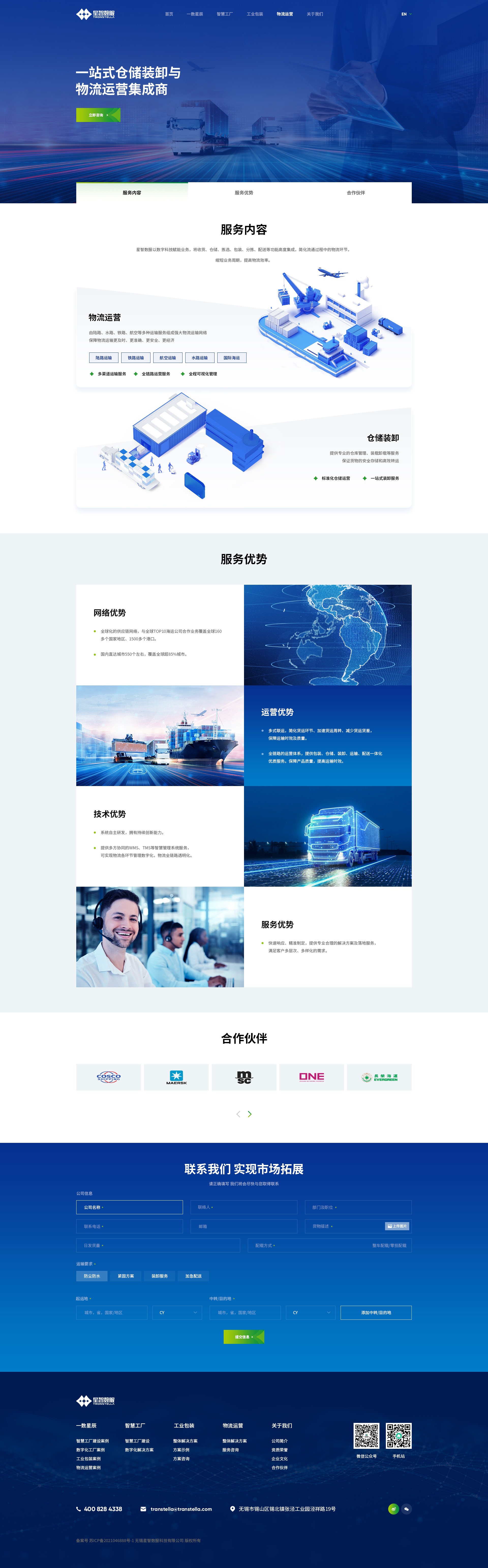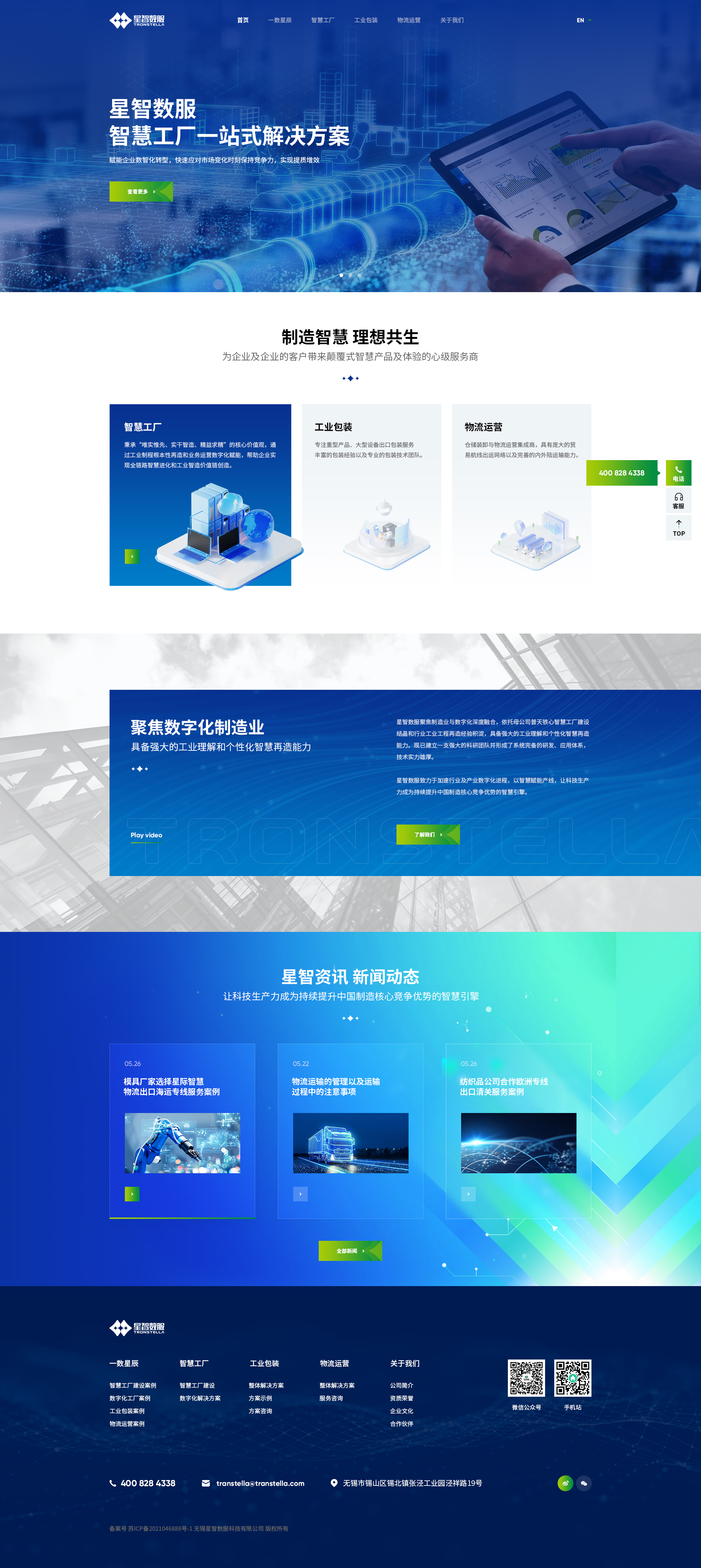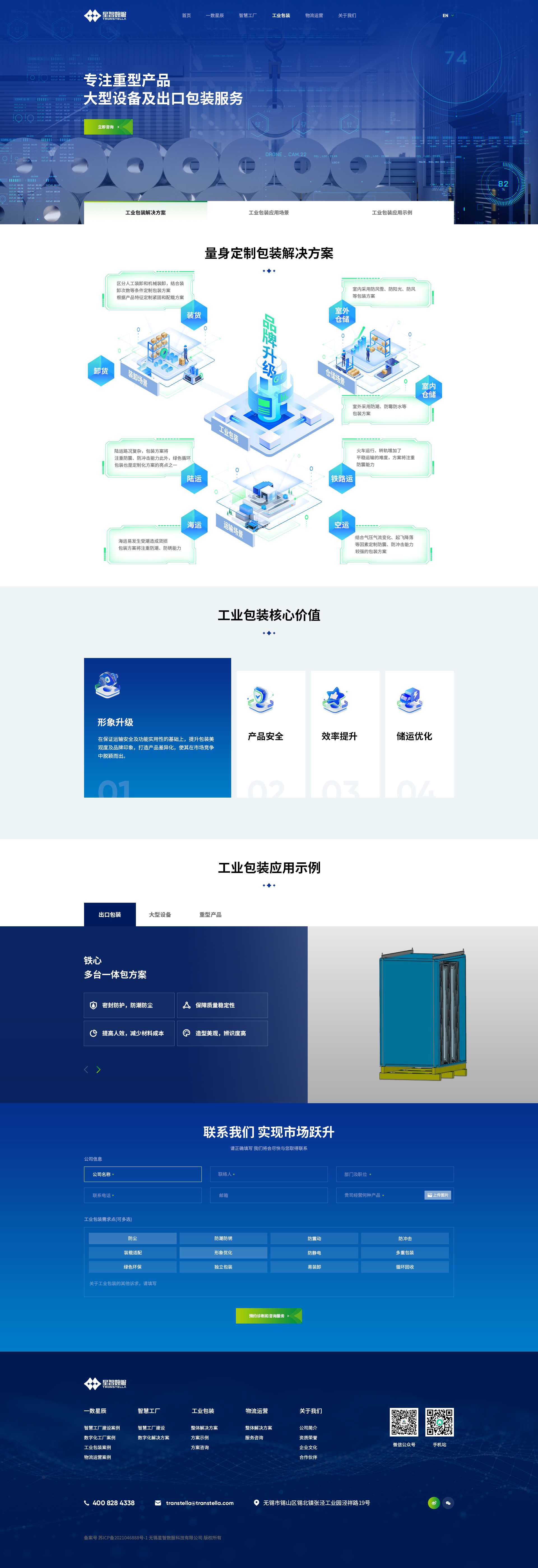 服务:品牌形象官网定制,智慧工厂解决方案,工业包装设计,综合物流运营,响应式布局